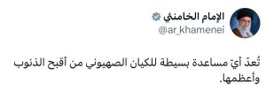 – تُعدّ أيّ مساعدة بسيطة للكيان الصهيوني من أقبح الذنوب وأعظمها.