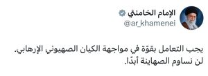 يجب التعامل بقوّة في مواجهة الكيان الصهيوني الإرهابي. لن نساوم الصهاينة أبدًا.