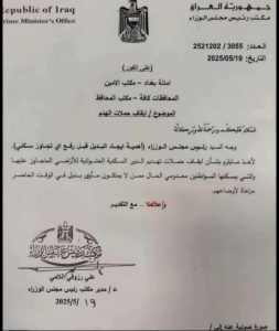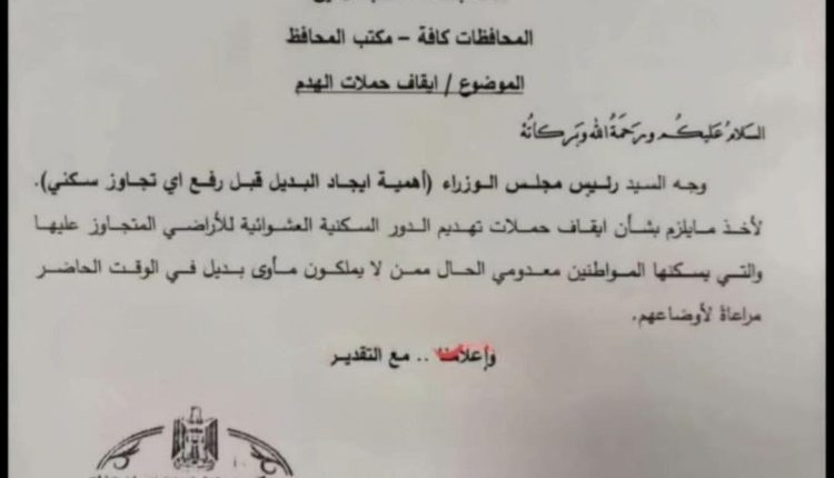السوداني يوجه بإيقاف حملات تهديم الدور السكنية للمتجـاوزين لحين إيجاد بديل