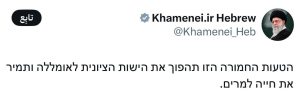 السيد القائد علي الخامنئي دام ظله في منشور بالعبرية على منصة إكس: