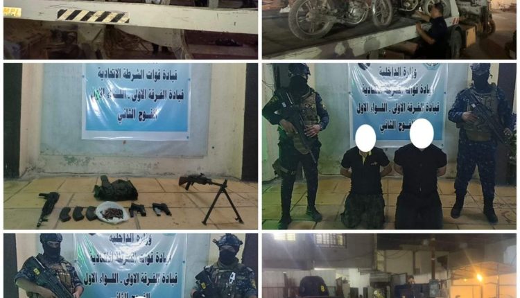 اسفرت العملية الأمنية التي نفذتها قطعات الفرقة الأولى في متابعة الخارجين عن القانون ومن المطلوبين للقضاء بالإضافة إلى تنفيذ واجبات تفتيش عن الأسلحة الغير مرخصة في مناطق (البتاويين والكمالية والعبيدي ) عن :