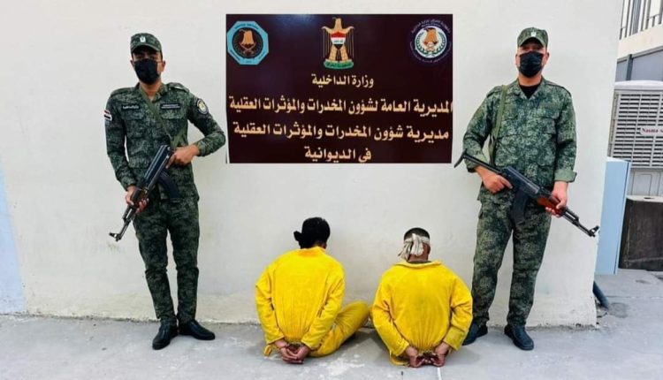 قوة مشتركة من مكافحة المخدرات والاستخبارات تلقي القبض على تاجري مخدرات بحوزتهما 4 طائرات مسيرة ومواد مخدرة وسلاح ناري في الديوانية