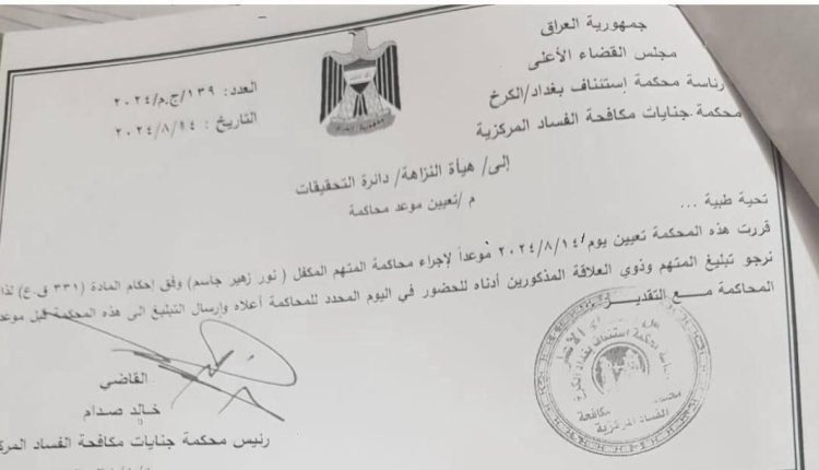 قررت محكمة جنايات مكافحة الفساد المركزية، تحديد الأربعاء المقبل الموافق 14 من شهر آب/أغسطس الجاري موعداً لمحاكمة المتهم بقضية الأمانات الضريبية ما تُعرف بـ”سرقة القرن”