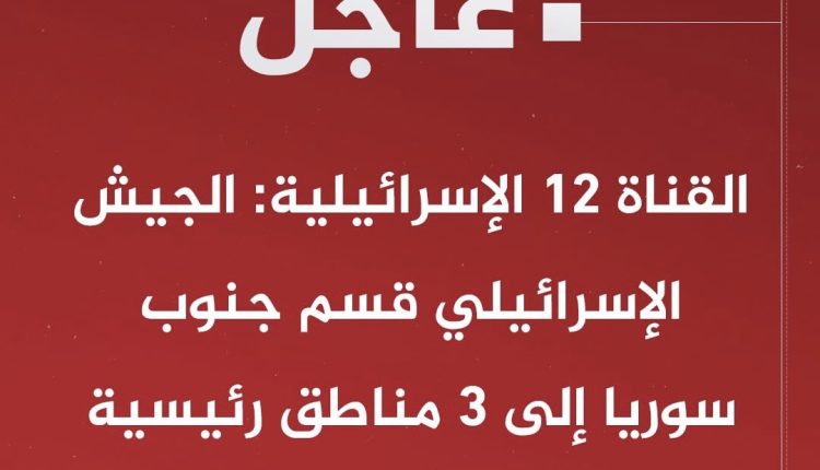 القناة 12 الإسرائيلية الجيش الإسرائيلي قسم جنوب سوريا إلى 3 مناطق