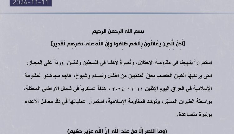 بيان صادر عن المقاومة الاسلامية في العراق :