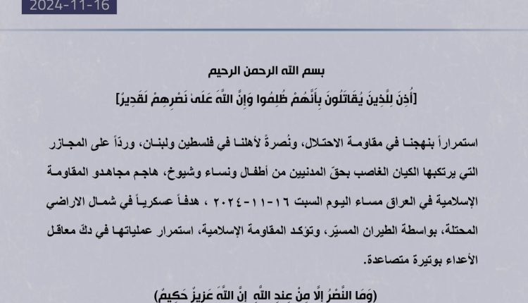 بيان صادر عن المقاومة الاسلامية في العراق :