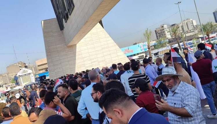 تظاهرة لموظفي الوزارات ودوائر الدولة إلى ساحة التحرير ببغداد مطالبين بسلم رواتب عادل بين الموظفين