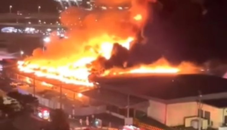 مشاهد من حريق كبير في مستودع لجيش العدو الأمريكي بمدينة بوسان في كوريا الجنوبية