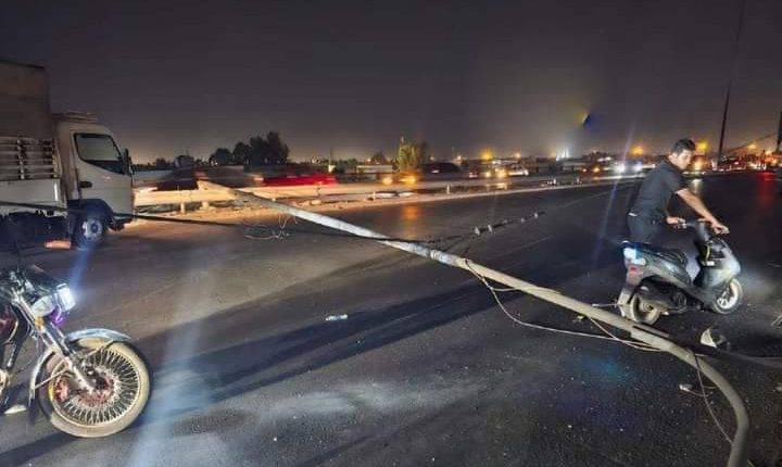 سقوط عامود انارة وسط جسر في بغداد يؤدي لقطع الطريق على سريع الدورة باتجاه تقاطع درويش