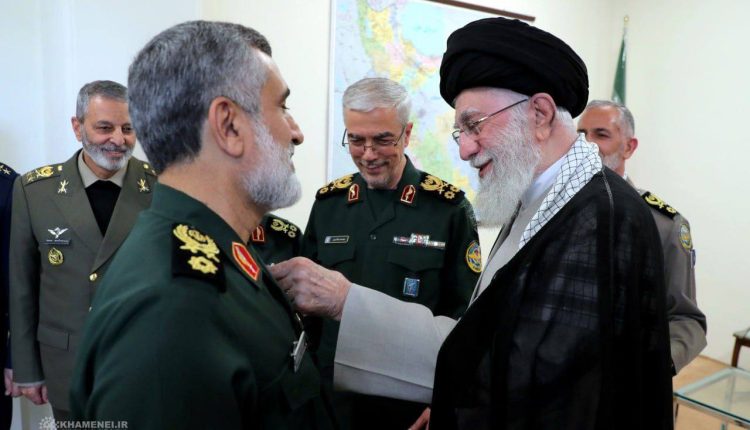 قائد الثورة الإسلامية السيد علي الخامنئي “دام ظله” يمنح الجنرال أمير علي حاجي زاده، قائد القوة الجوية الفضائية في الحرس الثوري الإسلامي “وسام الفتح” بعد عملية “الوعد الصادق2”.