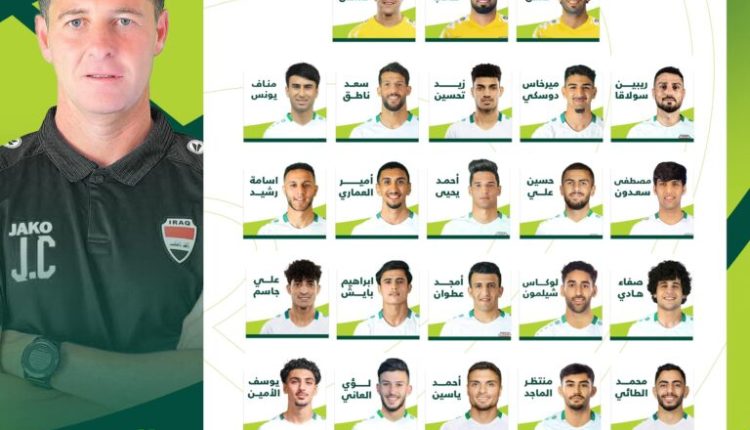 تألفت القائمةُ من 26 لاعباً هم كل من : جلال حسن ، فهد طالب ، حسين حسن ، مناف يونس ، زيد تحسين ، ريبين سولاقا ، سعد ناطق ، حسين علي ، مصطفى سعدون ، ميرخاس دوسكي ، أحمد يحيى ، أمير العماري ، إبراهيم بايش ، صفاء هادي ، لوكاس شليمون ، أمجد عطوان ، أسامة رشيد ، محمد الطائي ، منتظر ماجد ، يوسف الأمين ، لؤي العاني ، أحمد ياسين ، علي جاسم ، مهند علي ، أيمن حسين ، علي الحمادي