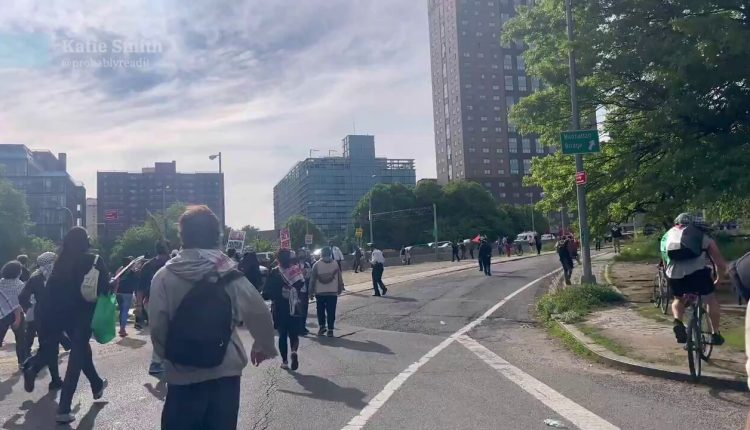 متظاهرون مؤيدون لفلسطين يستولون على جسر مانهاتن