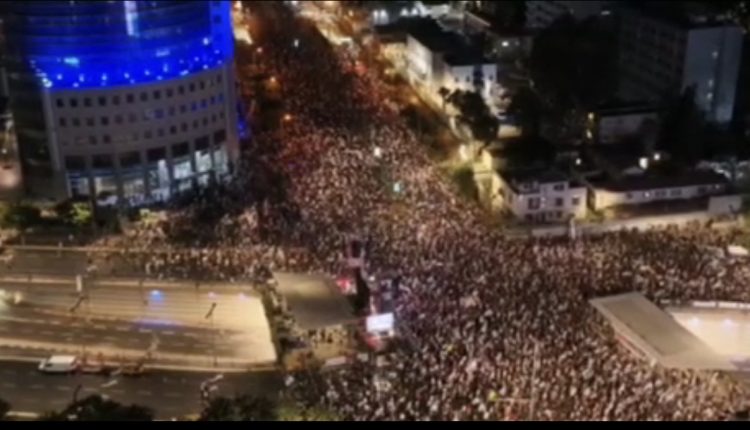 • مظاهرات ضخمة في تل أبيب للمطالبة بتقديم موعد الانتخابات، وعقد صفقة تعيد الأسرى
